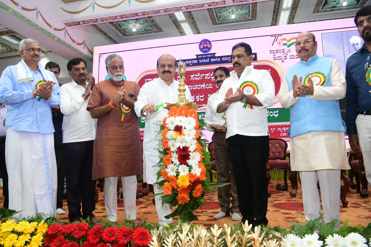 ಬೆಂಗಳೂರು : ಮುಖ್ಯಮಂತ್ರಿ ಬಸವರಾಜ ಬೊಮ್ಮಾಯಿ ಅವರು ಇಂದು ವಿಧಾನಸೌಧದ ಬ್ಯಾಂಕ್ವೆಟ್ ಸಭಾಂಗಣದಲ್ಲಿ ಮಾಜಿ ರಾಷ್ಟ್ರಪತಿ ಡಾ. ಸರ್ವಪಲ್ಲಿ ರಾಧಾಕೃಷ್ಣನ್ ಅವರ ಜನ್ಮದಿನದ ಅಂಗವಾಗಿ ಆಯೋಜಿಸಿದ್ದ ಶಿಕ್ಷಕರ ದಿನಾಚರಣೆ ಕಾರ್ಯಕ್ರಮವನ್ನು ಉದ್ಘಾಟಿಸಿದರು.