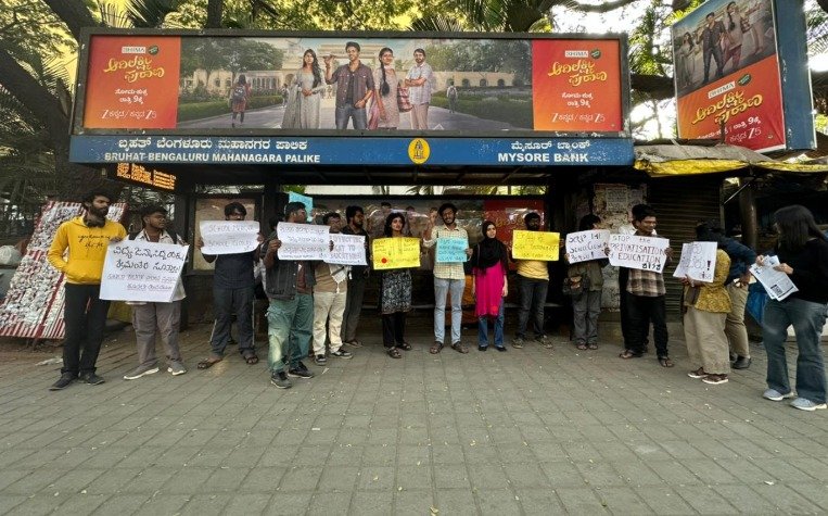 ಬೆಂಗಳೂರು: ಕರ್ನಾಟಕ ರಾಜ್ಯ ಸರ್ಕಾರದ ಕರ್ನಾಟಕ ಪಬ್ಲಿಕ್ ಶಾಲೆ (KPS) ಯೋಜನೆಯಡಿ 25,683 ಸರ್ಕಾರಿ ಶಾಲೆಗಳನ್ನು ವಿಲೀನಗೊಳಿಸುವ ಪ್ರಸ್ತಾವನೆಯ ವಿರುದ್ಧ, ಆಲ್ ಇಂಡಿಯಾ ಸ್ಟೂಡೆಂಟ್ಸ್ ಅಸೋಸಿಯೇಷನ್ (AISA) 19 ಡಿಸೆಂಬರ್ 2025ರಂದು ಮೈಸೂರು ಬ್ಯಾಂಕ್ ವೃತ್ತದಲ್ಲಿ ಪ್ರತಿಭಟನೆ ನಡೆಸಿತು. ಈ ವಿಲೀನದಿಂದ ಸಾವಿರಾರು ಸರ್ಕಾರಿ ಶಾಲೆಗಳು ಮುಚ್ಚುವ ಪರಿಸ್ಥಿತಿ ಉಂಟಾಗಲಿದೆ ಎಂದು ಪ್ರತಿಭಟನಾಕಾರರು ಗಮನಸೆಳೆದರು.