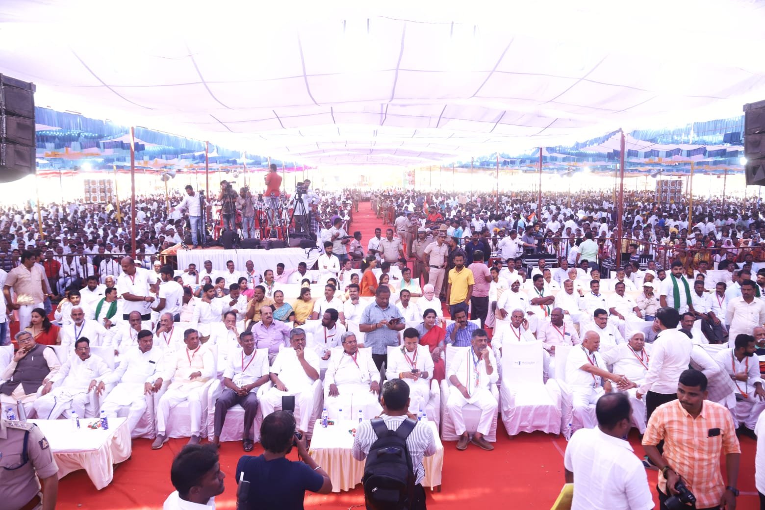 ಜನಸ್ತೋಮವನ್ನುದ್ದೇಶಿಸಿ ಮಾತನಾಡಿದ ವಿಧಾನಸಭೆ ವಿರೋಧ ಪಕ್ಷದ ನಾಯಕ ಸಿದ್ದರಾಮಯ್ಯ, 2018ರಲ್ಲಿ ನಮ್ಮ ಸರ್ಕಾರದ ಕಡೇ ಬಜೆಟ್ ಅನ್ನು ಮಂಡಿಸಿದ್ದೆ, ಅದರಲ್ಲಿ ನಾವು ಅಧಿಕಾರಕ್ಕೆ ಬರುವ ಪೂರ್ವದಲ್ಲಿ ನೀಡಿದ್ದ ಭರವಸೆಗಳು ಹಾಗೂ ಅಧಿಕಾರಕ್ಕೆ ಬಂದ ನಂತರ ಈಡೇರಿಸಿದ ಭರವಸೆಗಳು ಯಾವುವು ಹಾಗೂ ಮುಂದೆ ಏನು ಮಾಡುತ್ತೇವೆ ಎಂಬುದನ್ನು ಹೇಳಿದ್ದೆ. 2013ರ ಚುನಾವಣೆಯಲ್ಲಿ ರಾಜ್ಯದ ಜನರಿಗೆ 165 ಭರವಸೆಗಳನ್ನು ನೀಡಿದ್ದೆ, ಅವುಗಳಲ್ಲಿ 158 ಭರವಸೆಗಳನ್ನು ಈಡೇರಿಸಿ ನುಡಿದಂತೆ ನಡೆದಿದ್ದೇವೆ. ಆದರೆ ರಾಜ್ಯ ಬಿಜೆಪಿ ಅವರು 2018ರಲ್ಲಿ ಜನರಿಗೆ 600 ಭರವಸೆಗಳನ್ನು ನೀಡಿದ್ದರು. ಇದರಲ್ಲಿ 50 ರಿಂದ 60 ಭರವಸೆಗಳನ್ನು ಕೂಡ ಈಡೇರಿಸಲು ಅವರಿಂದ ಸಾಧ್ಯವಾಗಿಲ್ಲ. ಈಗ ಮತ್ತೆ ಚುನಾವಣೆ ಹತ್ತಿರ ಬಂದಿರುವುದರಿಂದ ಬೊಮ್ಮಾಯಿ ಅವರು ಫೆಬ್ರವರಿ 17ಕ್ಕೆ ಬಜೆಟ್‌ ಮಂಡಿಸುವ ಘೋಷಣೆ ಮಾಡಿದ್ದಾರೆ, ಇದರಲ್ಲಿ ಏನೆಲ್ಲ ಘೋಷಣೆ ಮಾಡಲು ಸಾಧ್ಯ ಅವೆಲ್ಲವನ್ನು ಘೋಷಿಸಿ, ಒಂದನ್ನೂ ಈಡೇರಿಸಲ್ಲ. ಇಂಥಾ ಭರವಸೆಗಳನ್ನು ನೀವು ನಂಬಬೇಡಿ ಎಂದರು.