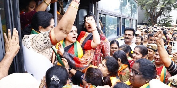 ಬೆಂಗಳೂರು: ರಾಜ್ಯ ಕಾಂಗ್ರೆಸ್ ಸರ್ಕಾರದ ವಿರುದ್ಧ ಪ್ರತಿಪಕ್ಷ ಬಿಜೆಪಿ ಸಮಾರ ಸಾರಿದ್ದು ರಾಜಧಾನಿ ಬೆಂಗಳೂರಿನಲ್ಲಿ ಶನಿವಾರ ಮಹಿಳೆಯರು ನಡೆಸಿದ ಪ್ರತಿಭಟನೆ ಗಮನಸೆಳೆಯಿತು.