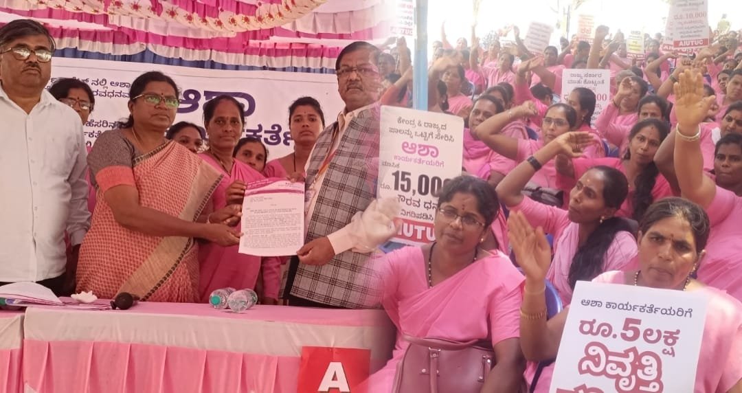 ಎಐಯುಟಿಯುಸಿ ರಾಜ್ಯ ಅಧ್ಯಕ್ಷ ಕಾ.ಕೆ.ಸೋಮಶೇಖರ್ ಮಾತನಾಡಿ “ಸುದೀರ್ಘ ಕಾಲದಿಂದ ಆಶಾ ಕಾರ್ಯಕರ್ತೆಯರ ಪೋತ್ಸಾಹ ಧನ ಹೆಚ್ಚಿಲ್ಲ. ಕೇಂದ್ರ ಸರ್ಕಾರ 1500 ರೂ ಹೆಚ್ಚಿಸುವುದಾಗಿ ಹೇಳಿ ಅದನ್ನೂ ಕೇಂದ್ರ ಬಜೆಟ್ ಸಂದರ್ಭದಲ್ಲಿ ಪ್ರಸ್ತಾಪ ಮಾಡಿಲ್ಲ ಎಂದರು.