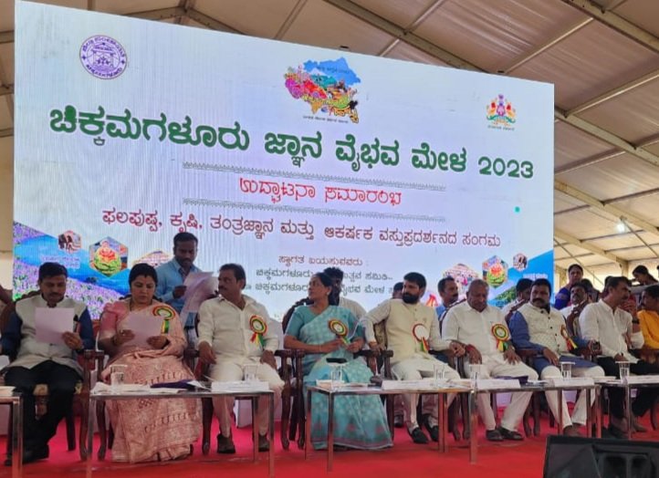 ಚಿಕ್ಕಮಗಳೂರು: ಇಂದಿನಿಂದ ಐದು ದಿನಗಳ ಕಾಲ ಚಿಕ್ಕಮಗಳೂರು ಜಿಲ್ಲಾ ಉತ್ಸವ ನಡೆಯುತ್ತಿದೆ. ಈ ಉತ್ಸವದಲ್ಲಿ ಫಲಪುಷ್ಪ, ಕೃಷಿ, ತಂತ್ರಜ್ಞಾನ ಮತ್ತು ಆಕರ್ಷಕ ವಸ್ತು ಪ್ರದರ್ಶನದ ಸಂಗಮವಾದ ಚಿಕ್ಕಮಗಳೂರು ಜ್ಞಾನ ವೈಭವ ಮೇಳ-2023ಕ್ಕೆ ಅದ್ಧೂರಿ ಚಾಲನೆ ನೀಡಲಾಯಿತು.