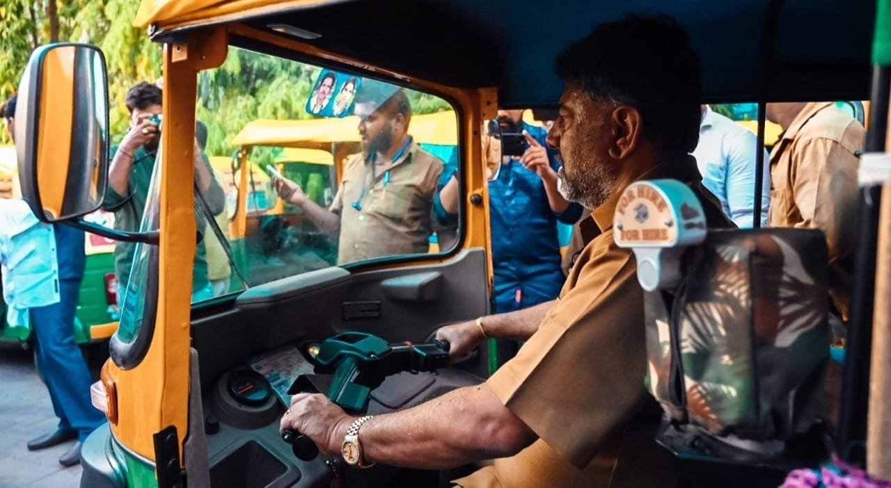 ನಟ ಶಂಕರ್ ನಾಗ್ ಅಭಿಮಾನಿ ಸಮೂಹವನ್ನೇ ಹೊಂದಿರುವ ಆಟೋ ಚಾಲಕರು ಸಿನಿಮಾ ಸ್ಟೈಲಲ್ಲೇ ಬಂದ ಕೈ ನಾಯಕ ಡಿ.ಕೆ.ಶಿವಕುಮಾರ್ ಅವರು ರಿಕ್ಷಾ ಚಾಲಕರ ಜೊತೆ ಸೆಲ್ಫೀ ತೆಗೆದು ಮೇನಿಯಾ ಸೃಷ್ಟಿಸಿದರು. ತಾನೂ ಆಟೋ ಚಲಾಯಿಸಿ ಸಂಭ್ರಮಿಸಿದರು.