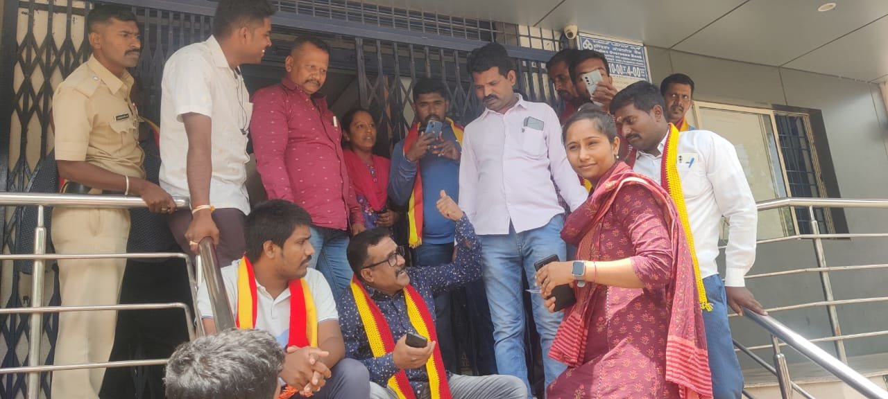 ಕನ್ನಡ ಮಾತನಾಡದ ಮ್ಯಾನೇಜರ್; ಇಂಡಿಯನ್ ಓವರಿಸಿಸ್ ಬ್ಯಾಂಕ್ ಸಿಬ್ಬಂದಿ ವಿರುದ್ದ  ಕರವೇ ಪ್ರತಿಭಟನೆ