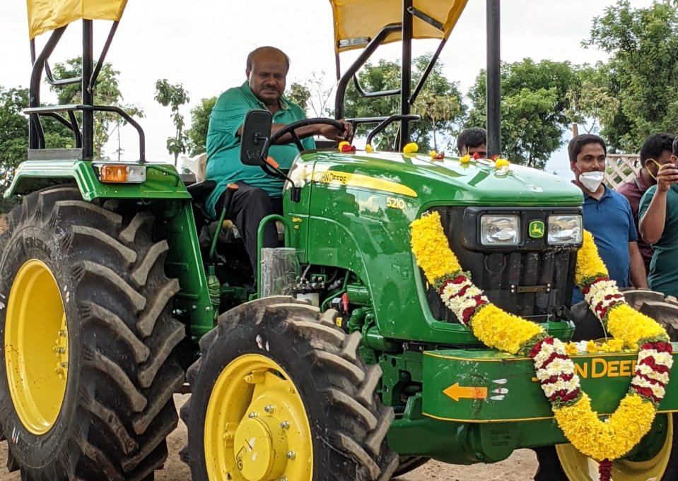 ಮಾಜಿ ಪ್ರಧಾನಿ ದೇವೇಗೌಡರ ಸಮ್ಮುಖದಲ್ಲಿ ಪೂಜೆ ಸಲ್ಲಿಸುವ ಮೂಲಕ ಹೊಸ ಟ್ರ್ಯಾಕ್ಟರ್ನ್ನು  ಸ್ವಾಗತಿಸಿದ ಕುಮಾರಸ್ವಾಮಿಯವರು ತಾವೇ  ಟ್ರ್ಯಾಕ್ಟರ್  ಚಲಾಯಿಸಿ ಗಮನಸೆಳೆದರು.