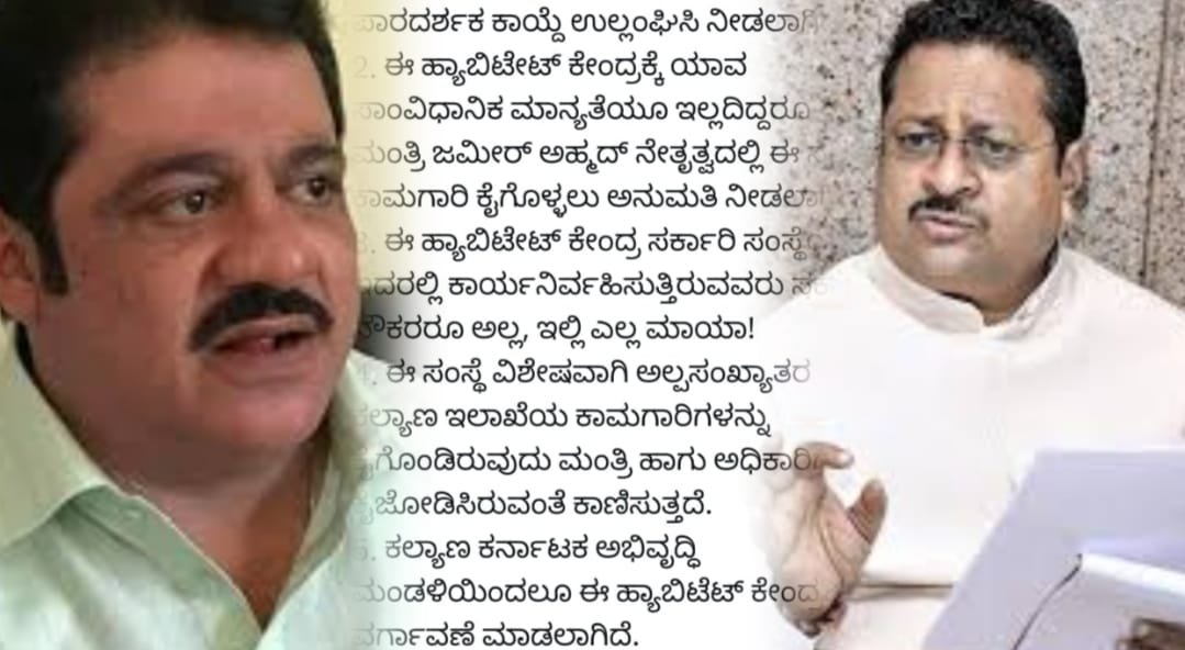 ಕರ್ನಾಟಕ ರಾಜ್ಯ ಹ್ಯಾಬಿಟೇಟ್ ಕೇಂದ್ರ, ಬೆಂಗಳೂರು ಎಂಬ ಒಂದು ಸಂಘಕ್ಕೆ ಸುಮಾರು 600 ಕೋಟಿ ಅನುದಾನವನ್ನು ಕರ್ನಾಟಕ ರಾಜ್ಯ ಪಾರದರ್ಶಕ ಕಾಯ್ದೆ ಉಲ್ಲಂಘಿಸಿ ನೀಡಲಾಗಿದೆ ಎಂದು ಆರೋಪಿಸಿರುವ ಯತ್ನಾಳ್, ಈ ಹ್ಯಾಬಿಟೇಟ್ ಕೇಂದ್ರಕ್ಕೆ ಯಾವ ಸಾಂವಿಧಾನಿಕ ಮಾನ್ಯತೆಯೂ ಇಲ್ಲದಿದ್ದರೂ ಮಂತ್ರಿ ಜಮೀರ್ ಅಹ್ಮದ್ ನೇತೃತ್ವದಲ್ಲಿ ಈ ಸಂಸ್ಥೆಗೆ ಕಾಮಗಾರಿ ಕೈಗೊಳ್ಳಲು ಅನುಮತಿ ನೀಡಲಾಗಿದೆ ಎಂದು ದೂರಿದ್ದಾರೆ.