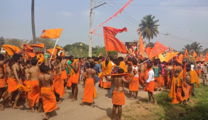 ಹಿಂದೂ ಜಾಗರಣಾ ವೇದಿಕೆಯ ವತಿಯಿಂದ ಶ್ರೀರಂಗಪಟ್ಟಣದಲ್ಲಿ ಹನುಮ ಜಯಂತಿ ಅಂಗವಾಗಿ ಬೃಹತ್ ಸಂಕೀರ್ತನಾ ಯಾತ್ರೆ ಹಮ್ಮಿಕೊಳ್ಳಲಾಗಿತ್ತು ಜಿಲ್ಲೆಯ ವಿವಿಧೆಡೆಯಿಂದ ಸಾವಿರಾರು ಭಕ್ತರು ಶ್ರೀರಂಗಪಟ್ಟಣಕ್ಕೆ ಹನುಮ ಮಾಲಾಧಾರಿಗಳಾಗಿ ವಿವಿಧ ವಾಹನಗಳ ಮೂಲಕ ಶ್ರೀರಂಗಪಟ್ಟಣದ ಗಂಜಾಮ್ ಬಳಿ ಇರುವ ಹನುಮ ದೇವಾಲಯ ಬಳಿ ಜಮಾವಣೆಗೊಂಡು ಪಟ್ಟಣದ ಮೂಡಲ ಬಾಗಿಲು ಆಂಜನೇಯ ದೇಗುಲದ ವರೆಗೂ ಸಂಕೀರ್ತನಾ ಯಾತ್ರೆ ನಡೆಸಿದ್ರು. ಈ ಯಾತ್ರೆಯಲ್ಲಿ ಸಾವಿರಾರು ಹನುಮ ಭಕ್ತರು ಹನುಮ ಕೇಸರಿ ಧ್ವಜದೊಂದಿಗೆ ಹನುಮ ಜೈಕಾರದ ಜೊತೆ ರಾಮ ಜಪ ಜಪಿಸಿತ್ತಾ ಪಾಲ್ಗೊಂಡ್ರು. ಸಂಕೀರ್ತನಾ ಯಾತ್ರೆ ಮೆರವಣಿಗೆ ವೇಳೆ ಕೆಲವರು ಅಪ್ಪು ಭಾವ ಚಿತ್ರಪ್ರದರ್ಶನ ಮಾಡಿ ಅಗಲಿದ ಅಪ್ಪುಗೆ ಶ್ರದ್ದಾಂಜಲಿ ಸಲ್ಲಿಸಿದ್ದು ವಿಶೇಷವಾ ಗಿತ್ತು.ಅಲ್ದೆ ಈ ಯಾತ್ರೆಯಲ್ಲಿ ಚಿಕ್ಕ ವಯಸ್ಸಿನ ಬಾಲಕರಿಂದ ಹಿಡಿದು ವೃದ್ದರು ಕೂಡ ಹನುಮ ಮಾಲಾಧಾರಿಗಳಾಗಿ ಈ ಸಂಕೀರ್ತನಾ ಯಾತ್ರೆಯಲ್ಲಿ ಪಾಲ್ಗೊಂಡರು.