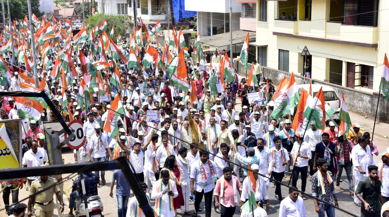 ಮಂಗಳೂರು: ಉತ್ತರ ಕ್ಷೇತ್ರದ ಕಾಂಗ್ರೆಸ್ ಅಭ್ಯರ್ಥಿಯಾಗಿ ಇನಾಯತ್ ಅಲಿ ಅವರು ಗುರುವಾರ ಬೆಳಿಗ್ಗೆ ಕಾವೂರು ಮೈದಾನದಲ್ಲಿ ಬಹಿರಂಗ ಸಮಾವೇಶ ನಡೆಸಿ ಕಾವೂರು ಮಹಾಲಿಂಗೇಶ್ವರ ದೇವಸ್ಥಾನದವರೆಗೆ ಸಹಸ್ರಾರು ಸಂಖ್ಯೆಯಲ್ಲಿದ್ದ ಕಾರ್ಯಕರ್ತರೊಂದಿಗೆ ಭರ್ಜರಿ ರೋಡ್ ಶೋ ನಡೆಸಿ ಬಳಿಕ ಮಿನಿವಿಧಾನ ಸೌಧದಲ್ಲಿ ನಾಮಪತ್ರ ಸಲ್ಲಿಸಿದರು.