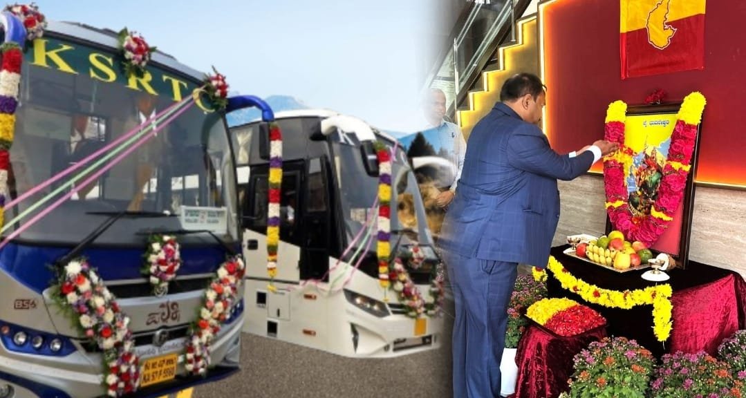ಬೆಂಗಳೂರು: ರಾಜ್ಯಾದ್ಯಂತ ಇಂದು ಕನ್ನಡ ಹಬ್ಬವನ್ನು ಅದ್ಧೂರಿಯಾಗಿ ಆಚರಿಸಲಾಗುತ್ತಿದೆ. ಕರುನಾಡಿನ ಜನರ ಹೆಮ್ಮೆಯ ರಥ ಕೆಎಸ್ಸಾರ್ಟಿಸಿ ಪಾಳಯದಲ್ಲೂ ಭುವನೇಶ್ವರಿಯ ಕೈಂಕರ್ಯ ಗಮನಸೆಳೆಯಿತು.