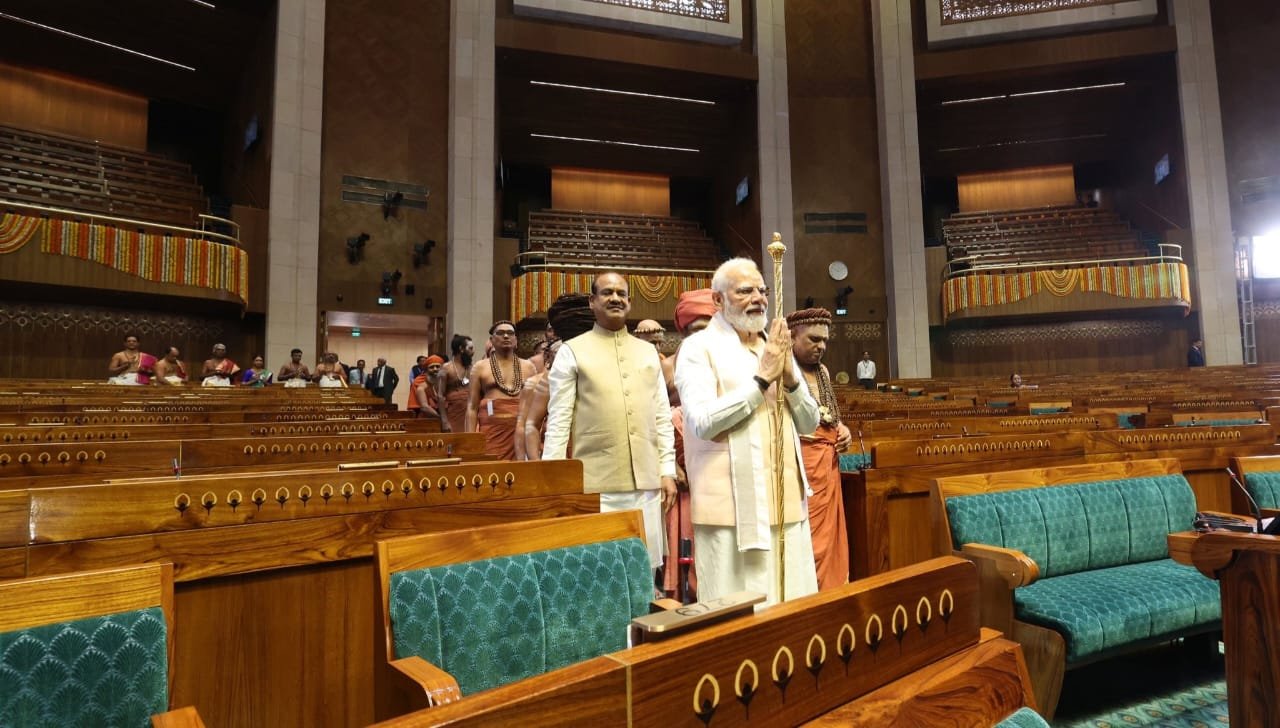 ಈ ಸಂದರ್ಭದಲ್ಲಿ ಪೌರಾಣಿಕ ಮಹತ್ವವುಳ್ಳ ರಾಜದಂಡವಾದ ‘ಸೆಂಗೋಲ್’ ಅನ್ನು ತಮಿಳುನಾಡಿನ ವಿವಿಧ ಅಧೀನಂ ತಂಡದವರು ಪ್ರಧಾನಿ ಮೋದಿ ಅವರಿಗೆ ಹಸ್ತಾಂತರಿಸಿದರು.