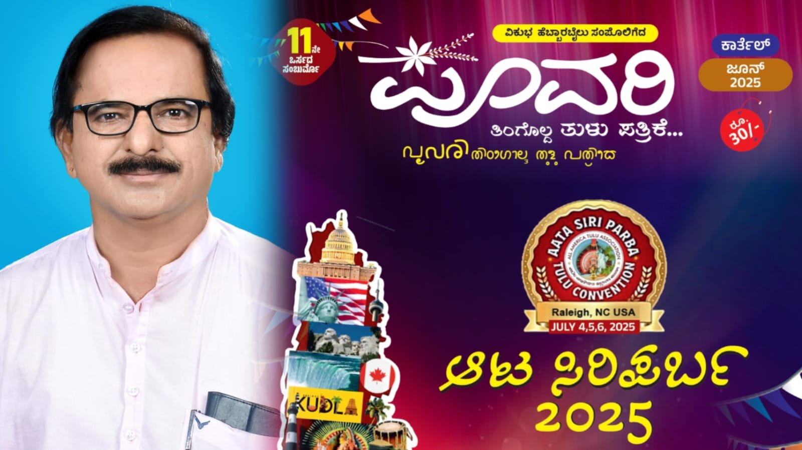 ದಕ್ಷಿಣ ಕನ್ನಡ ಜಿಲ್ಲೆಯ ಪುತ್ತೂರಿನಿಂದ ವಿಕುಭ ಹೆಬ್ಬಾರಬೈಲು ಸಂಪಾದಕತ್ವದಲ್ಲಿ ಪ್ರಕಟವಾಗುತ್ತಿರುವ ‘ಪೂವರಿ’ ಪತ್ರಿಕೆ ಇದೀಗ ದಶಮಾನೋತ್ಸವ ಸಂಭ್ರಮದಲ್ಲಿದೆ. ಈ ಸಂದರ್ಭದಲ್ಲಿ ಅಮೇರಿಕಾದಿಂದ ಸಂತಸದ ಸುದ್ದಿಯೊಂದು ತುಳುನಾಡಿಗೆ ಬಂದಿದೆ. ‘ಪೂವರಿ’ ತುಳು ಮಾಸಿಕದ ಜೂನ್ ತಿಂಗಳ ವಿಶೇಷ ಸಂಚಿಕೆಯು ಅಖಿಲ ಅಮೇರಿಕಾ ತುಳು ಅಂಗಣ ಯೂ.ಎಸ್.ಎ.(ಆಟ) ನೇತೃತ್ವದ ‘ಆಟ ಸಿರಿ ಪರ್ಬ- 2025’ ಸಮಾರಂಭದಲ್ಲಿ ಲೋಕಾರ್ಪಣೆಗೊಂಡು ಅಮೇರಿಕಾ ಚರಿತ್ರೆಯಲ್ಲಿ ಹೊಸ ಮನ್ವಂತರಕ್ಕೆ ಕಾರಣವಾಗಿದೆ.