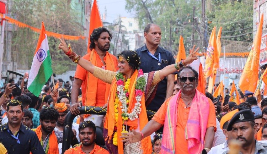ಹೈದರಾಬಾದ್ ಚುನಾವಣಾ ಅಖಾಡದಲ್ಲಿ ಮೇನಿಯಾ ಸೃಷ್ಟಿಸಿರುವ ಮಾಧವಿ ಲತಾ ಅವರು ಪ್ರಚಾರಕ್ಕೆ ಇಳಿದರೆ ಸಾಕು ಸಾವಿರಾರು ಮಂದಿ ಸಾತ್ ನೀಡುತ್ತಿದ್ದಾರೆ. ಇವರ ಜೊತೆ ಜನರು ಸೆಲ್ಫೀಗಾಗಿ ಮುಗಿಬೀಳುತ್ತಿರುವ ದೃಶ್ಯಗಳೂ ಸಾಮಾನ್ಯವಾಗಿದೆ.