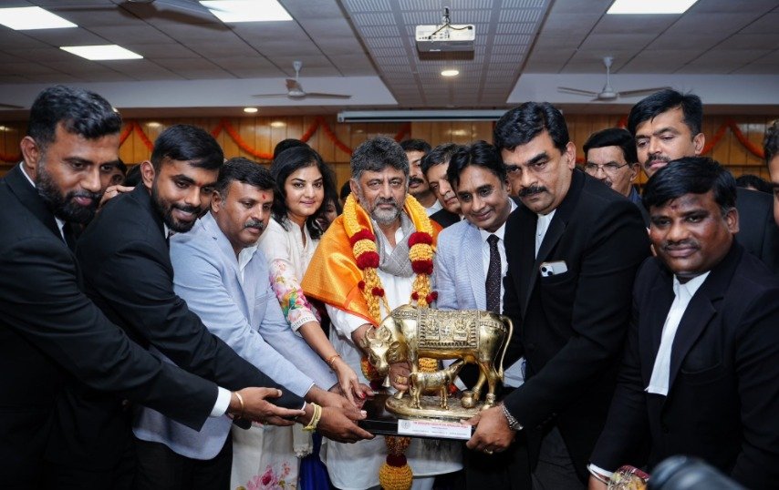 ಬೆಂಗಳೂರಿನ ಸಿಟಿ ಸಿವಿಲ್ ಕೋರ್ಟ್ ಆವರಣದಲ್ಲಿ ಶುಕ್ರವಾರ ಬೆಂಗಳೂರು ವಕೀಲರ ಸಂಘದ ವತಿಯಿಂದ ಹಮ್ಮಿಕೊಂಡಿದ್ದ ಬೆಂಗಳೂರು ನಿರ್ಮಾತೃ ನಾಡಪ್ರಭು ಕೆಂಪೇಗೌಡರ 516ನೇ ಜಯಂತಿ ಕಾರ್ಯಕ್ರಮವನ್ನು ಉದ್ಘಾಟಿಸಿ, ಮಾತನಾಡಿದ ಡಿಕೆಶಿ, ವಕೀಲರ ಬೇಡಿಕೆಗಳಿಗೆ ಸ್ಪಂಧಿಸುವ ಭರವಸೆ ನೀಡಿದರು.