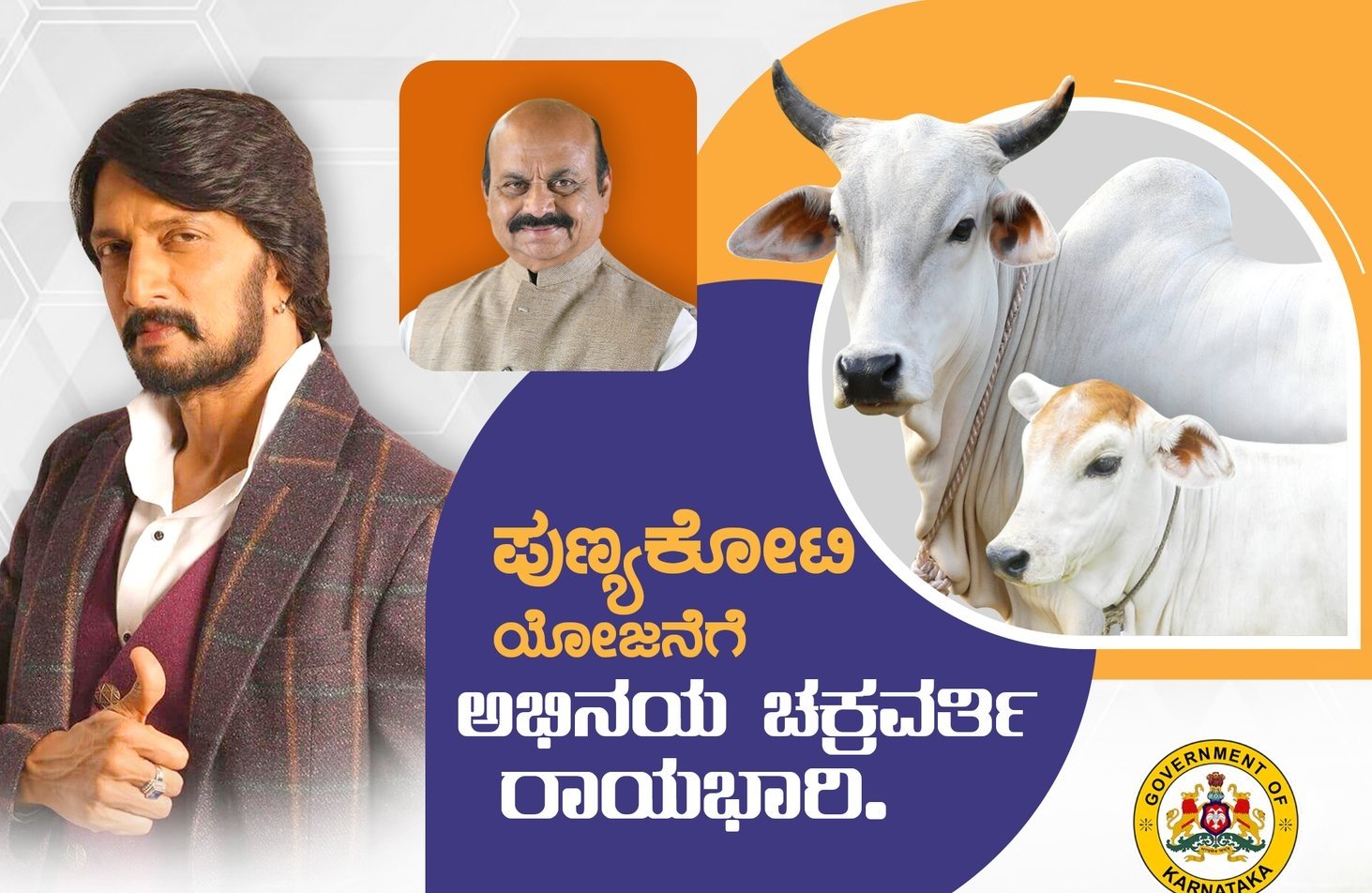 ಬೆಂಗಳೂರು: ರಾಜ್ಯ ಸರ್ಕಾರದ ಮಹತ್ವಾಕಾಂಕ್ಷೆಯ ‘ಪುಣ್ಯಕೋಟಿ’ ಯೋಜನೆಯ ಪ್ರಚಾರಕ್ಕಾಗಿ ನಟ ಕಿಚ್ಚ ಸುದೀಪ್ ಅವರನ್ನು ರಾಯಭಾರಿಯನ್ನಾಗಿ ರಾಜ್ಯ ಸರ್ಕಾರ ನೇಮಕ ಮಾಡಿದೆ ಎಂದು ಪಶು ಸಂಗೋಪನಾ ಸಚಿವ ಪ್ರಭು ಚೌಹಾನ್ ತಿಳಿಸಿದ್ದಾರೆ.