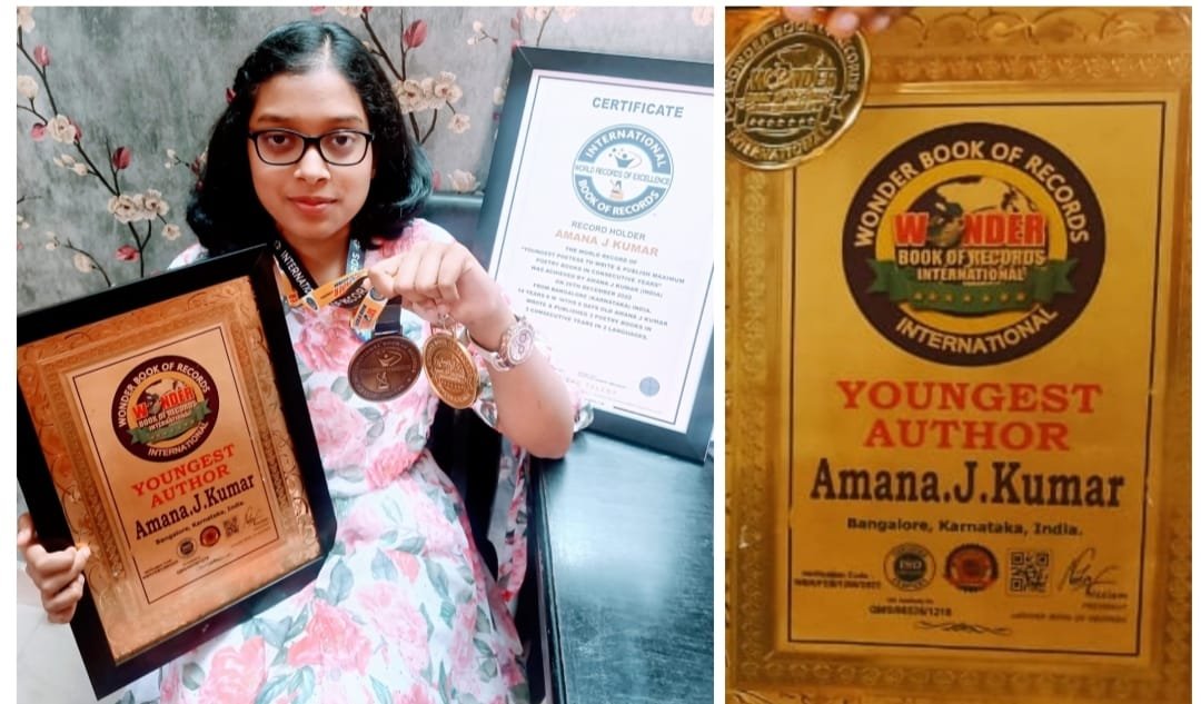 ಬೆಂಗಳೂರು: ಕರುನಾಡಿನ ಬಾಲ ಕವಯಿತ್ರಿ ಅಮನ ಜೆ.ಕುಮಾರ್, ಹೊಸದಾಗಿ ಎರಡು ಅಂತರರಾಷ್ಟ್ರೀಯ ದಾಖಲೆಗೆ ಸೇರ್ಪಡೆಯಾಗಿದ್ದಾಳೆ. “ಅಂತರರಾಷ್ಟ್ರೀಯ ವಿಶ್ವ ದಾಖಲೆ”ಯಲ್ಲಿ “ಅತ್ಯಂತ ಕಿರಿಯ ಕವಯಿತ್ರಿ” ಹಾಗೂ “ವಂಡರ್ ಬುಕ್ ಆಫ್ ವರ್ಲ್ಡ್ ರೆಕಾರ್ಡ್ಸ್”ನಲ್ಲಿ “ಕಿರಿಯ ಲೇಖಕಿ” ಎಂದು 14 ವರ್ಷ, 6 ತಿಂಗಳು ಹಾಗೂ 6 ದಿನ ವಯಸ್ಸಿನಲ್ಲಿ ಮೂರು ಪುಸ್ತಕಗಳನ್ನು ಮೂರು ಸತತ ವರ್ಷಗಳಲ್ಲಿ ಎರಡು ವಿವಿಧ ಭಾಷೆಗಳಲ್ಲಿ ಬರೆದಿರುವ ಕಿರಿಯ ಕವಯಿತ್ರಿ ಎಂದು ಗುರುತಿಸಲ್ಪಟ್ಟಿದ್ದಾರೆ.