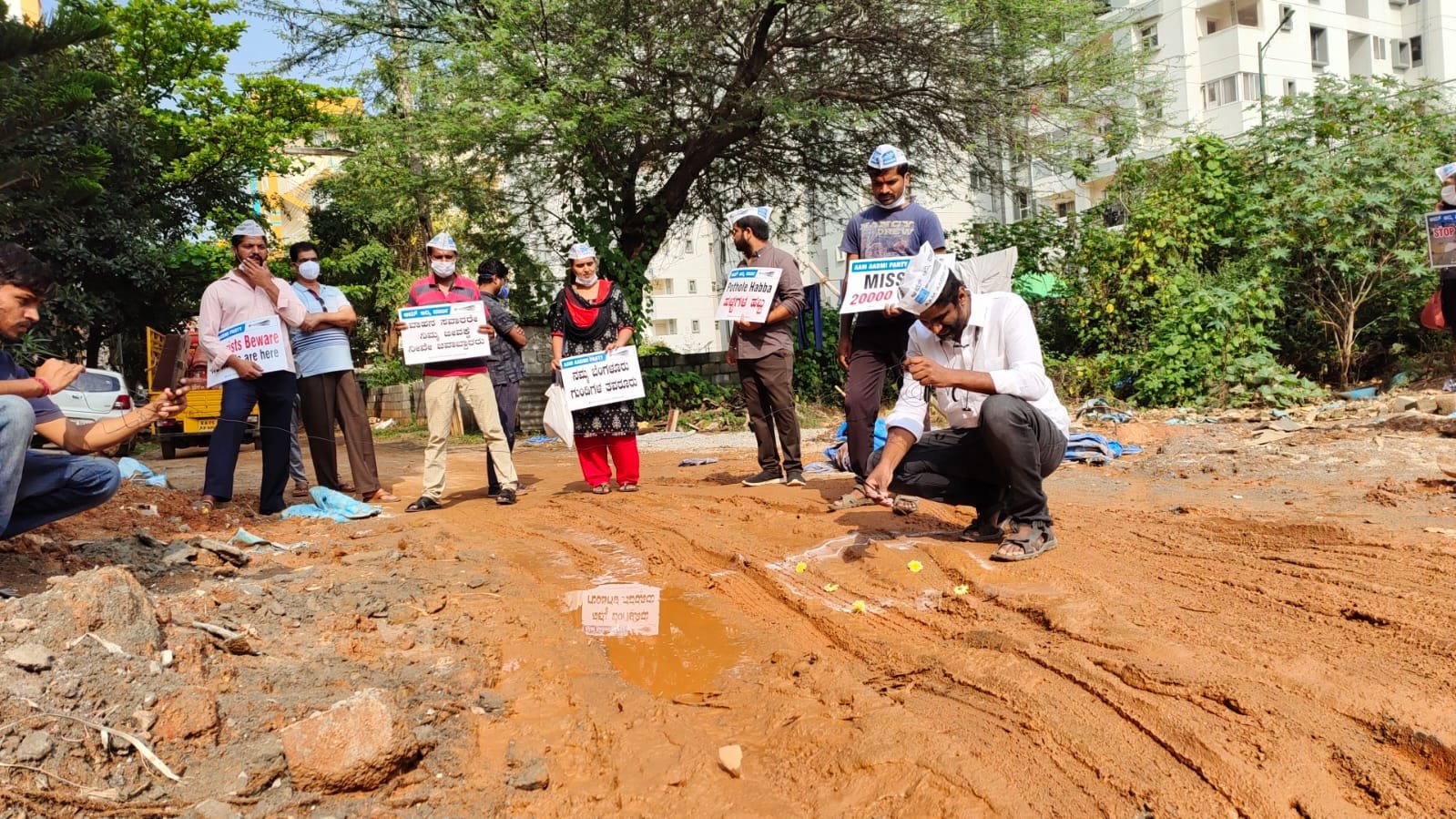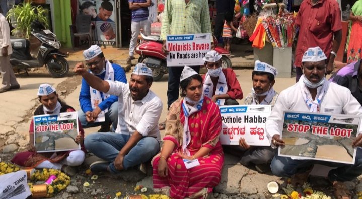 ರಸ್ತೆಗಳಲ್ಲಿರುವ ಗುಂಡಿಯ ಸುತ್ತ ರಂಗೋಲಿ ಹಾಕಿ, ಹೂವಿನಿಂದ ಅಲಂಕರಿಸಿ, ಆರತಿ ಎತ್ತಿ ಪೂಜೆ. ಅದರ ಸುತ್ತಮುತ್ತ ಸರ್ಕಾರದ ವಿರುದ್ಧ ಬರಹಗಳಿರುವ ಬೋರ್ಡ್ ಹಿಡಿದು ನಿಂತ ಬಿಳಿ ಟೋಪಿಧಾರಿಗಳು. ಅವರಿಂದ ಭ್ರಷ್ಟಾಚಾರದ ವಿರುದ್ಧ ಆಕ್ರೋಶದ ಘೋಷಣೆಗಳು.